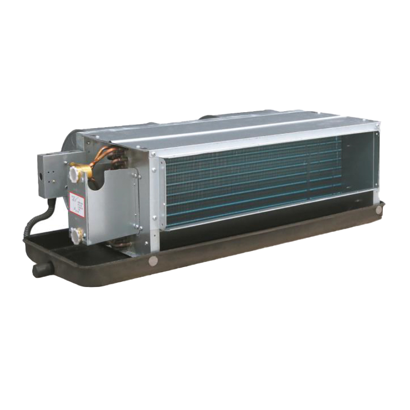 канальный фанкойл, средненапорный, мощность охлаждения 4 150 Вт, мощность обогрева 3 850 Вт, расход воды 12,17 л/мин, вид фанкойла: четырехтрубный, тип вентилятора: центробежный, расход воздуха 680 куб. м/ч, перепад давления 30 кПа