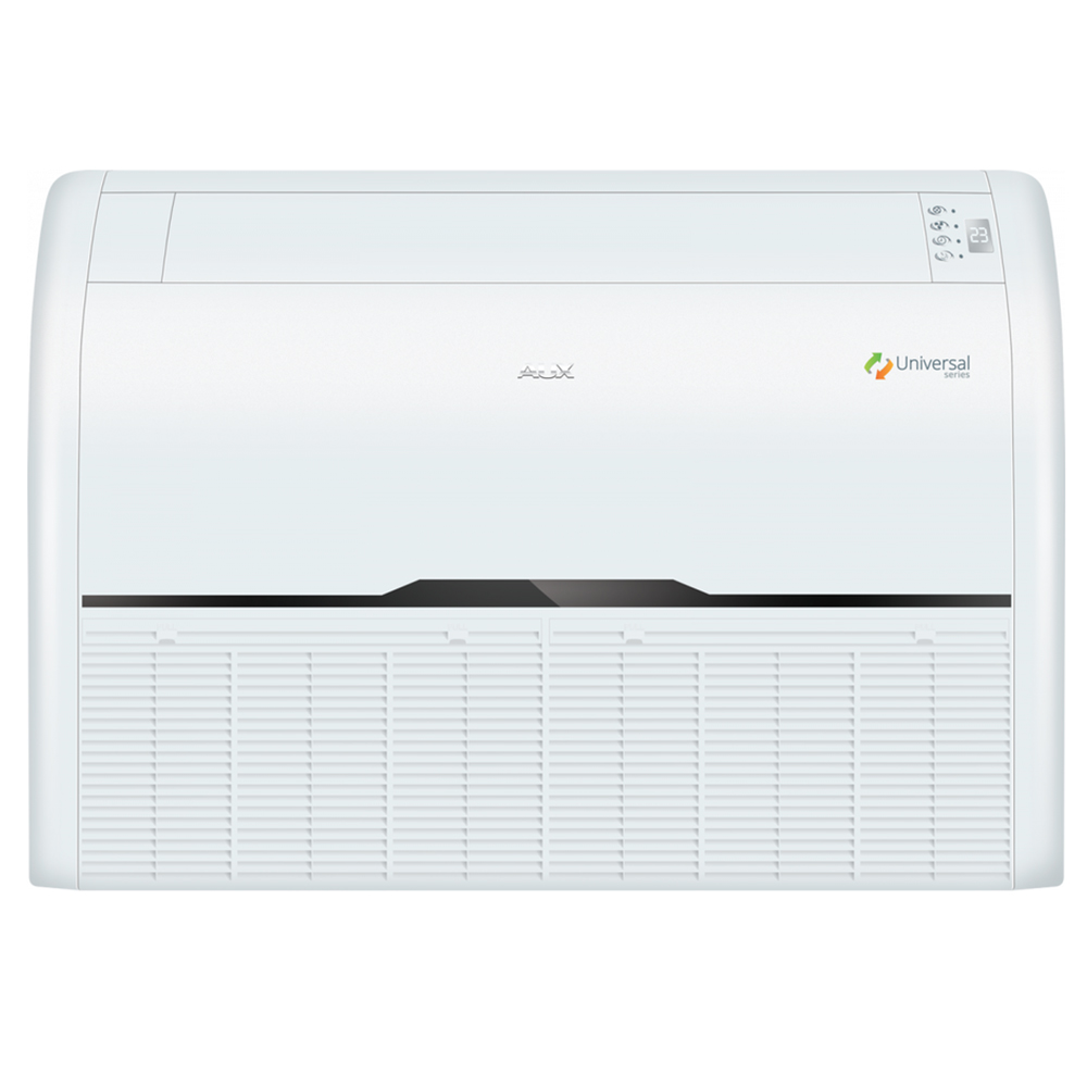 напольно-потолочная сплит-система, воздушный фильтр в комплекте, вывод дренажа с двух сторон, беспроводной пульт в комплекте, авторестарт, самодиагностика, изоляция основных электронных компонентов, обогрев и охлаждение помещений до 140 м², мощность охлаждения/обогрева 14070/15240 Вт, уровень шума внутреннего блока 58 дБ